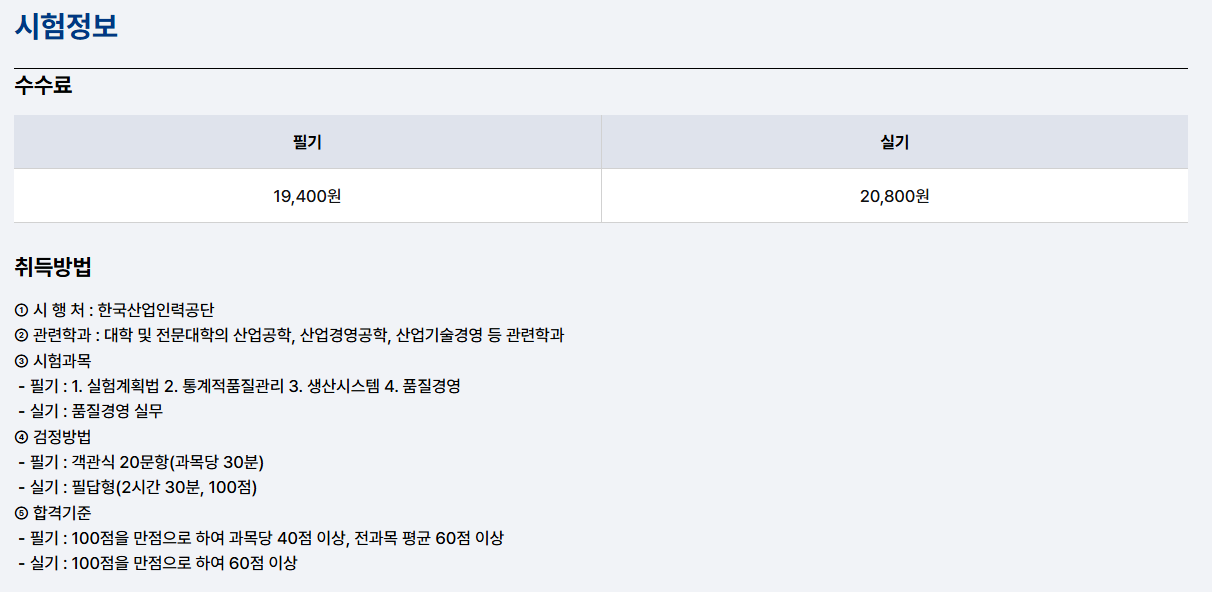 품질경영은 생산성과 직결되므로, 대기업 협력업체 및 공공기관에서도 해당 자격 소지자를 우대합니다.