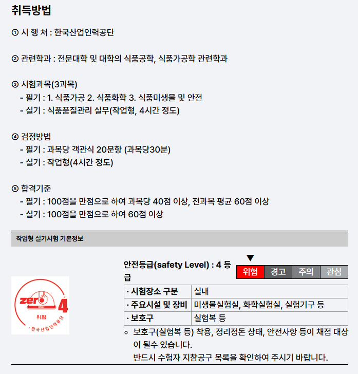 식품산업기사는 식품 제조, 위생관리, 품질보증 등 식품 산업의 전반을 아우르는 자격증입니다. HACCP 인증 및 식품위생법 관련 업무를 수행할 수 있습니다.